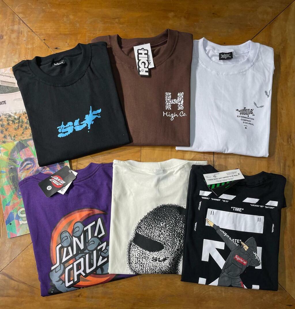 Modelagem Street Wear, gola com 3cm largura, comprimento de altura maiores, mangas mais próximo aos cotovelos, costura dupla na gola e fitilho para o reforço de ombro a ombro!